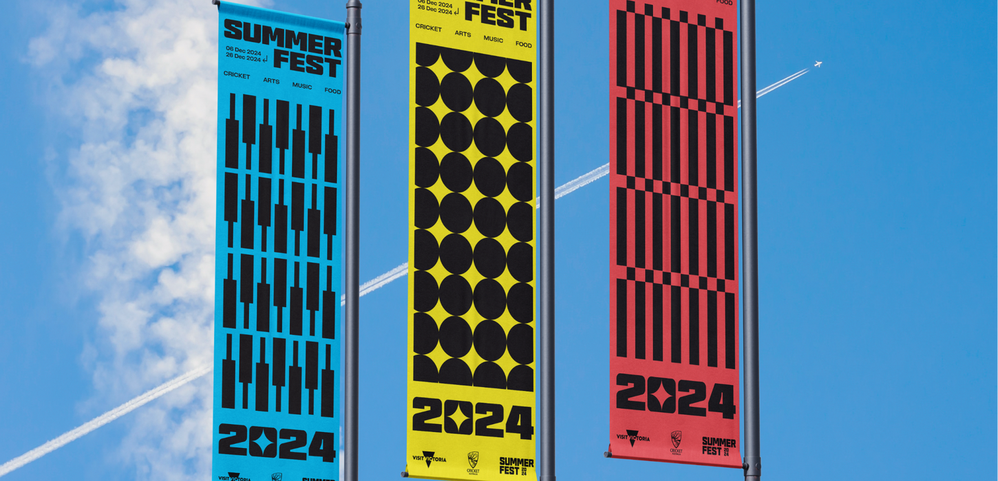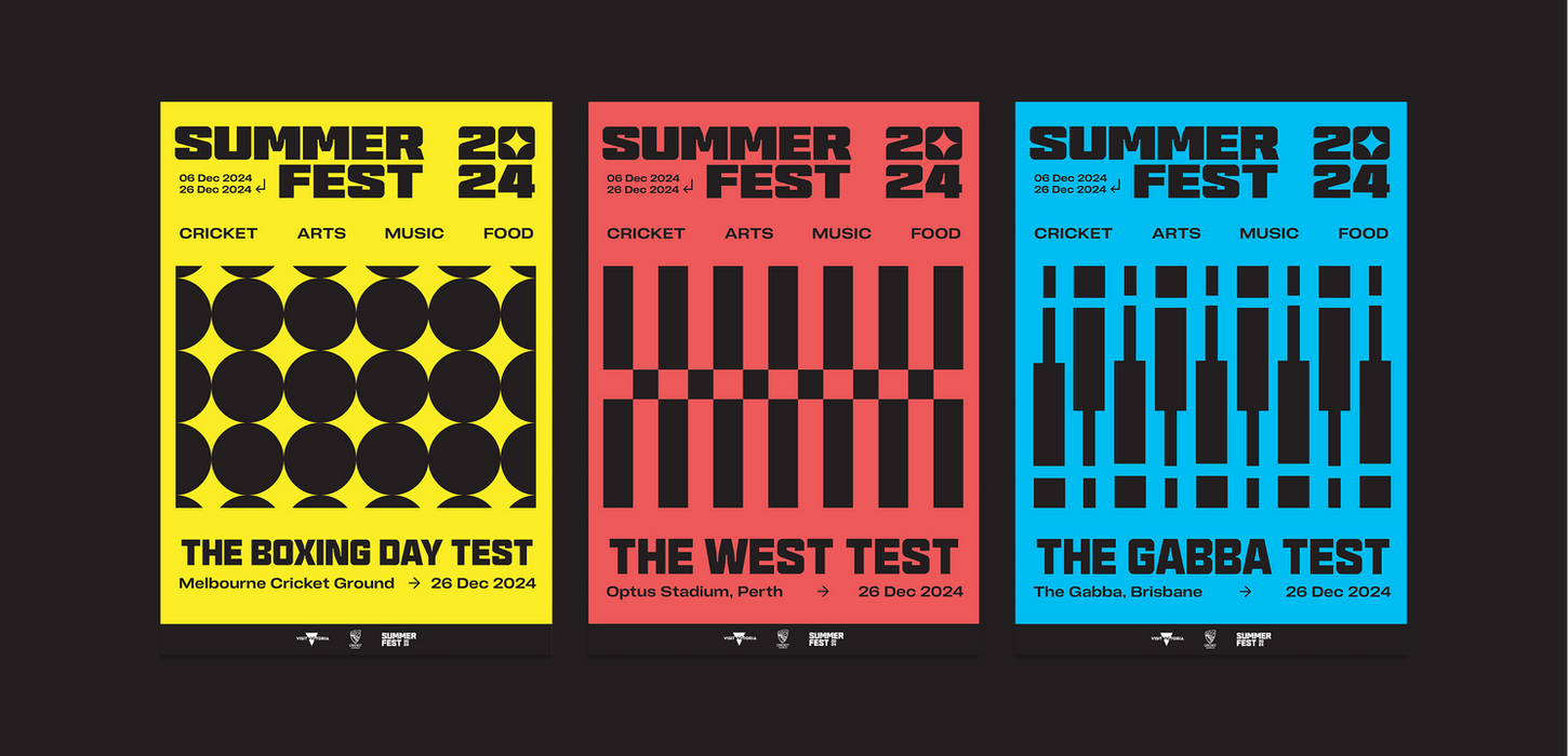 Summer Fest was developed to enhance the match-day experience, transforming the areas outside stadiums in Melbourne, Perth and Brisbane into vibrant fan festivals. The creative direction celebrates the energy of summer and the culture of cricket through bold, design-led storytelling.